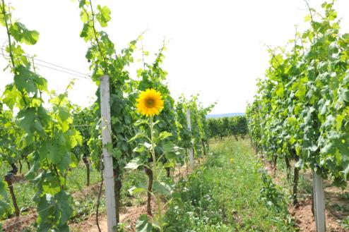 Durch artenreiche Begrünung werden die Weinberge zu